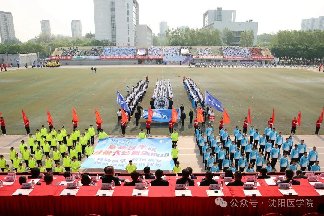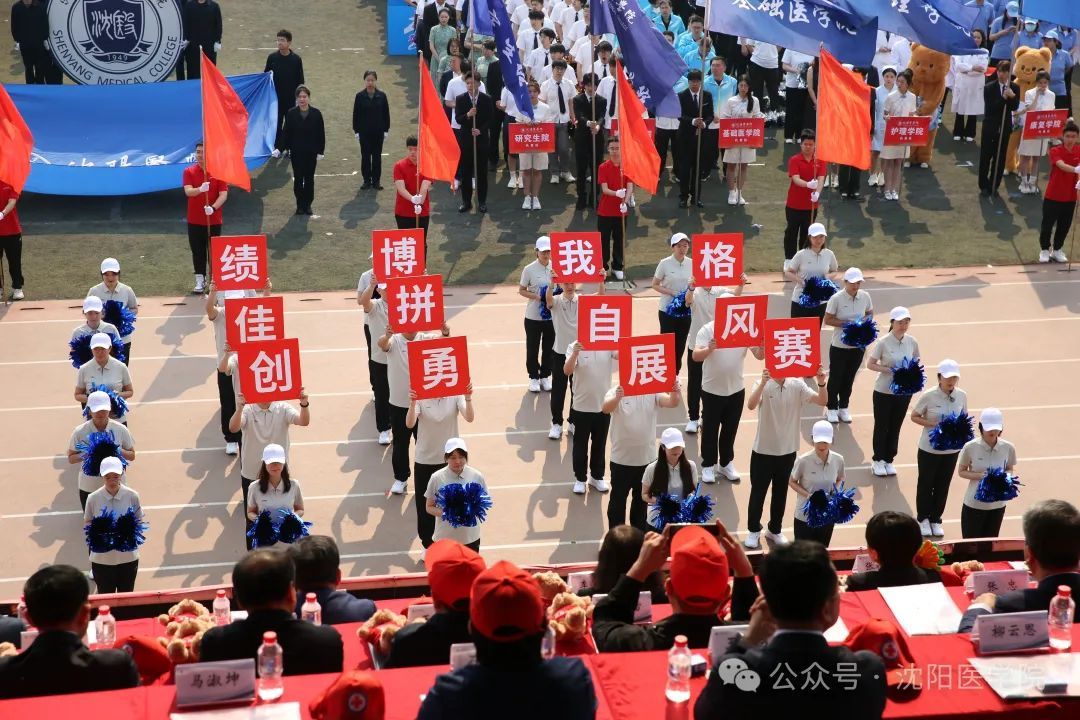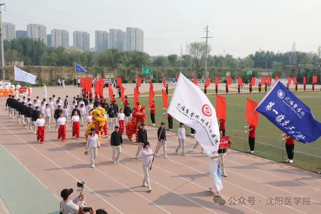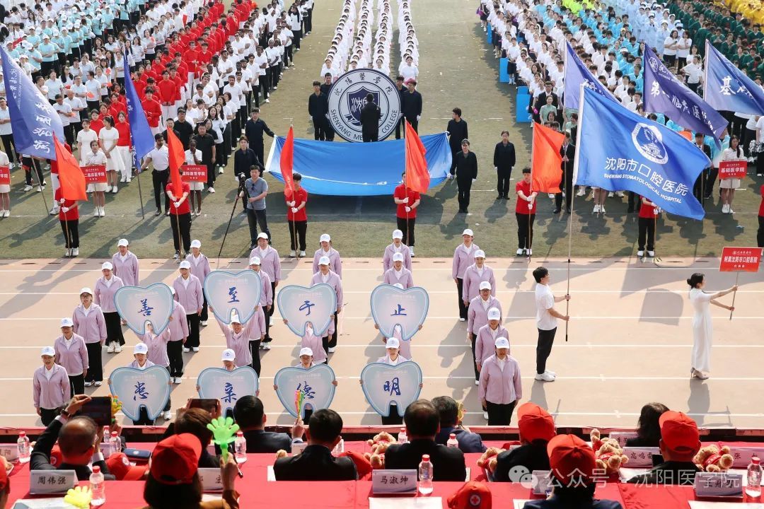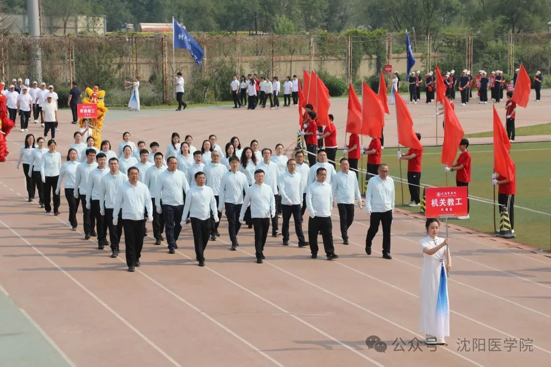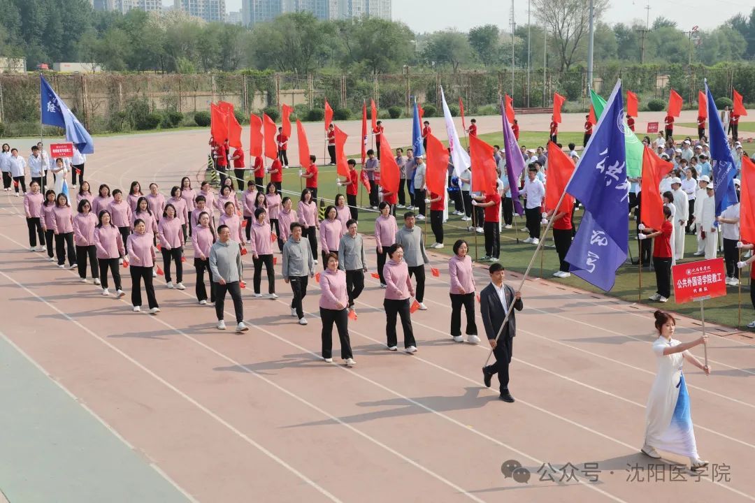 本届运动会第一临床医学院代表队、第二临床医学院代表队、附属沈阳市口腔医院代表队、附属二四二医院代表队、附属二四五医院代表队、附属沈阳市第五人民医院代表队、附属沈阳市第六人民医院代表队、附属沈阳市第一人民医院代表队、附属沈阳市儿童医院代表队、附属沈阳市妇幼保健院代表队、附属辽宁电力中心医院代表队、附属沈阳市第十一人民医院代表队和校本部各代表队组成的40个师生医护员工方队成为学校运动会参赛单位、参赛人数历届之最。各方队尽出新意、大展风采,表达了对党、对国家、对学校的赤子之心与深厚感情。他们昂首挺胸,脚步飒飒,带着灿烂的笑容,迈着整齐的步伐向大会主席台走来,热情在队伍中燃烧,带着青春的无限活力,用响亮的口号与精心设计的表演,展现着沈医人良好的精神风貌。