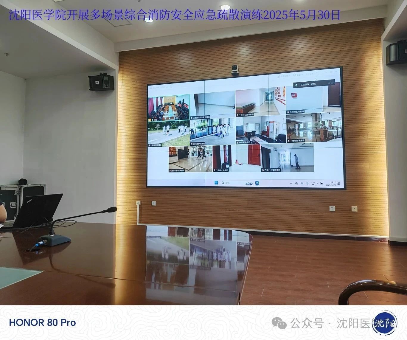 演练涵盖会议室、办公室、宿舍、教室、食堂等8类场景,6个工作组,全程通过14个影像采集点位实时直播至指挥中心,为复盘优化提供依据。