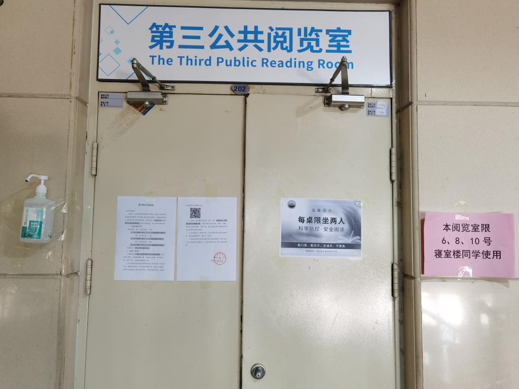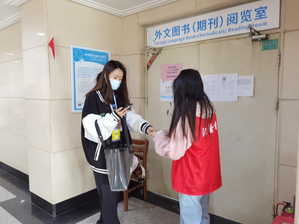 开馆前一天,图书馆老师带领学生管理员们认真布置了各开放阅览室,领取体温枪、手消、洗手液等防疫物资,并放置在了各阅览室门口及卫生间洗手台上,张贴开馆通知、网格化管理要求等标识,做好了充足的开馆准备。同时,与团委联系安排志愿者,在图书馆门口及各阅览室内各设一个志愿者服务岗,分别负责配合保安做好进出人员扫码测温和核验学生网格卡、学生证信息等工作,实时监控阅览室人数,维护阅览室秩序。
