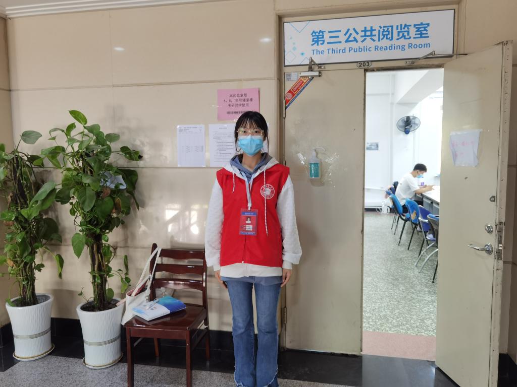 在同学们静心学习的安逸美好画面背后,是图书馆老师的默默坚守。在接到学校封闭管理的命令后,胡玉萍老师主动要求留下值班,并顺利完成了各项疫情防控工作任务。图书馆恢复开放后,她每天到馆值班,加强阅览室巡视管理,确保图书馆安全稳定。留校封闭一个多月,她任劳任怨,默默付出,用实际行动诠释着图书馆人的服务意识和奉献精神。
