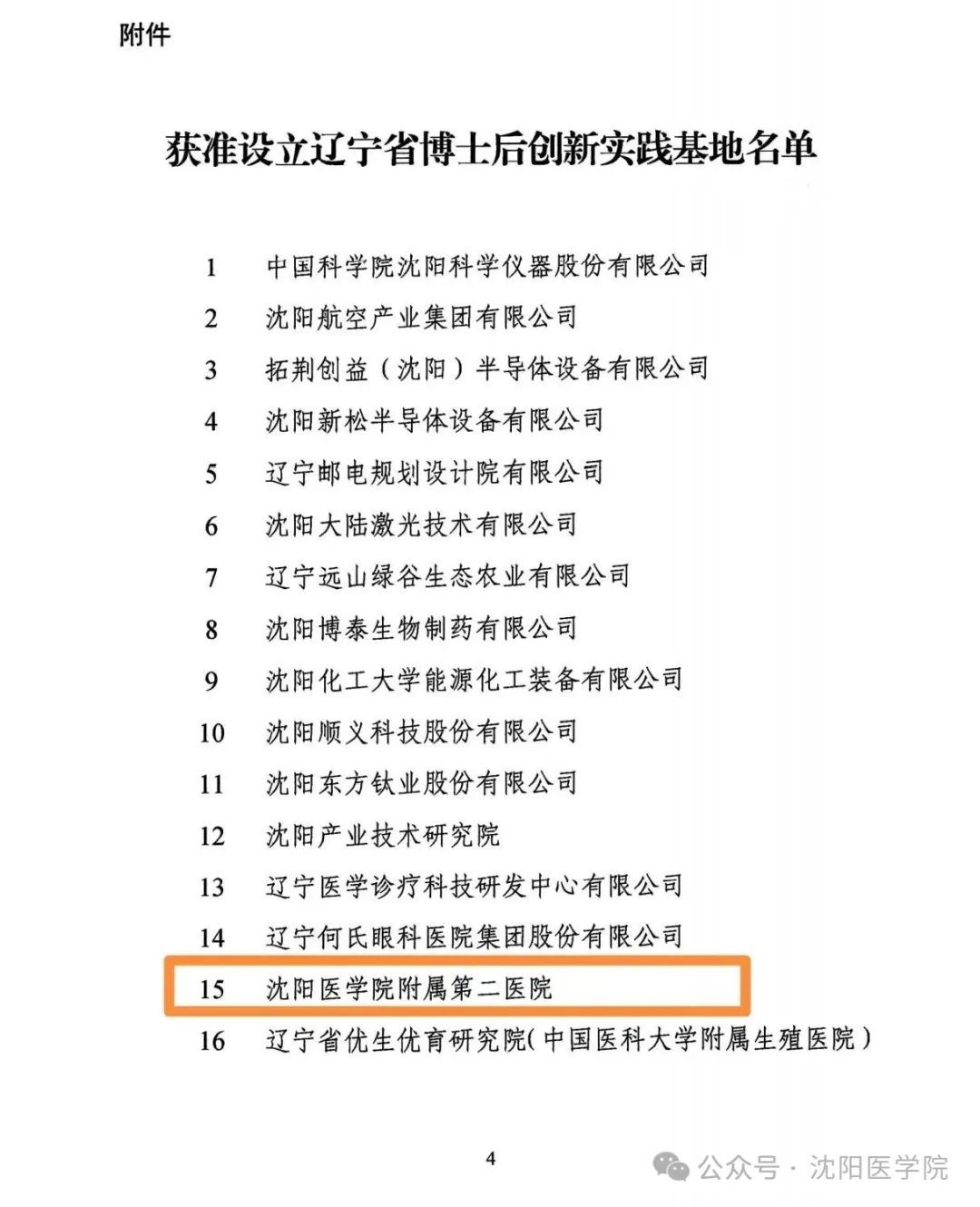 日前,辽宁省人力资源和社会保障厅、辽宁省科学技术厅、辽宁省工业和信息化厅联合发布《关于在中国科学院沈阳科学仪器股份有限公司等44家单位设立辽宁省博士后创新实践基地的通知》,米兰milan官方网站附属第二医院(第二临床学院)成功获批设立“辽宁省博士后创新实践基地”。