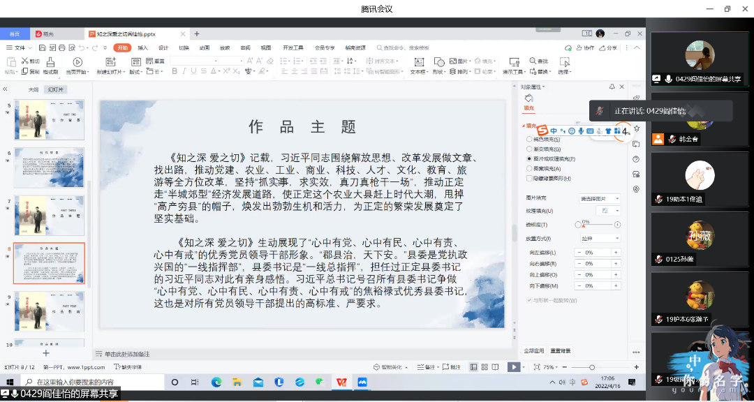 本届大赛历时近一个月,经过初赛的激烈角逐,有10组选手脱颖而出,进入到决赛阶段。决赛以视频会议的方式进行,分为陈述和答辩两个环节。比赛中,选手们身着正装端坐于电脑前,以饱满的热情阐述实验设计的思路和创新点,并认真回答评委老师的提问。