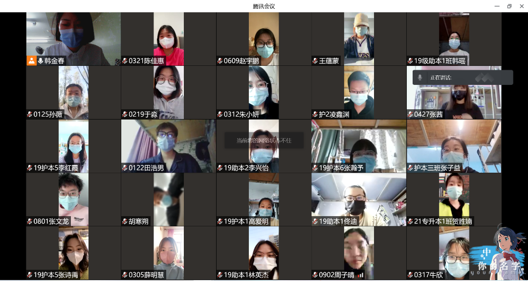 作为辽宁省第一批援鄂医疗队的一员,庞昶副教授以用医者仁心践行共产党员初心使命为主线分享了他的援鄂故事,讲述了不久前在沈阳职业技术学院疫情防控一线工作的经历,以切身体会帮助同学提高对校园疫情防控的重视,加深对变异新冠病毒传染性的认知,提醒同学戒除麻痹大意心理,切勿对疫情掉以轻心。此外,庞昶副教授还向同学介绍了如何高质量做好个人防护及情绪调节等知识。