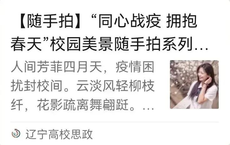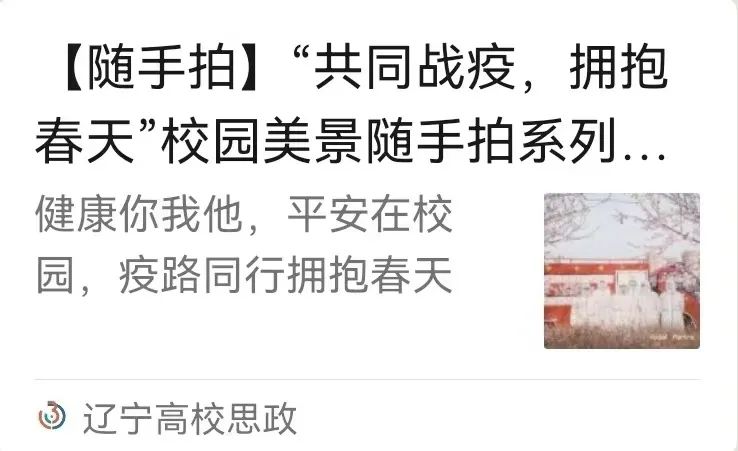辽宁省教育厅“辽宁高校思政”公众号“校园美景随手拍”展示米兰作品并作为封面