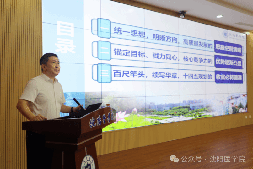一是推进“三位一体”融合发展,“博学至强工程” 跑赢“时间表”。“十四五”以来,学校实施“博士倍增”计划,大力引育高层次人才和优秀博士。截至2024年底,学校实有在岗博士307人,提前一年实现了“博士倍增”目标。学校对精准引育高层次人才完善了制度设计,今年上半年,公开招聘7名博士,其中“兴辽英才”青年拔尖人才、沈阳市C类人才1名,学校师资队伍建设正在从“总量提升”到“结构优化”。二是落实“立德树人”根本任务,“信仰至坚工程”“育人至真工程” “厚德至礼工程”攀上“新高度”。思政引领强基固本,理想信念根基深植厚培;以赛促学强基砺能,赛场佳绩彰显育人成效;双创教育激发潜能,创新实践收获丰硕成果;教学特长日益凸显,四六级通过率稳中有进;深造育人质量攀升,考研佳绩印证培养成效;生源质量优化升级,优质入口支撑卓越培养;实力与声誉同步提升,社会影响力持续扩大;专业布局形成新结构,建设质量忧中有喜;育人困局亟待突围,执业医师通过率攻坚在即;育人环境持续改善,办学条件保障更加有力。三是坚持“学科引领”提升内涵,“学贯至和工程” “学术至臻工程”迈入“新里程”。学科建设实现历史性突破,核心竞争力显著跃升。“十四五”开局至今,学校硕士点总数已达到9个,翻了两番;2024年年底学校被确定为博士学位授予立项建设单位,迈出了学科建设的关键一步;今年,临床医学学科进入ESI全球排名前1%。科研创新能级持续提升,成果产出大幅增加。纵向和横向课题逐年攀升,科研经费和科技奖励逐年递增;省市重点实验室分别增至8个和11个;科技成果转化中心、米兰milan官方网站大学科技园从无到有。职称新政激活发展动能,创业活力持续输出。实施教师岗位分类管理,推进薪酬制。学校将通过召开人才暨科技大会,继续强化典型引路作用,持续激发创业活力。深化“特色发展”塑造优势,“善治至远工程”驶入“新赛道”。产教融合的特色育人模式已经成型,医康养人才培养已经成为学校高质量发展最为活跃的增长点,“沈医医养”打响了品牌,获得了认可,是打造发展特色的成功样本。强化“校院融合”协同创新,“医疗至精工程”结出“新硕果。附属中心医院、附属二院、附属口腔医院特色更特、优势更优,取得高质量发展的扎实成效。狠抓作风建设展现风貌,校园处处涌动“新活力”。开展深入贯彻中央八项规定精神学习教育取得了良好的成效,全校党员领导干部和教职医护员工的精神面貌焕然一新,服务意识、担当精神和主动干、干在前的积极性、主动性显著增强。拼抢争实、追求卓越的内生驱动力愈加强劲,为学校高质量发展注入了澎湃动力。