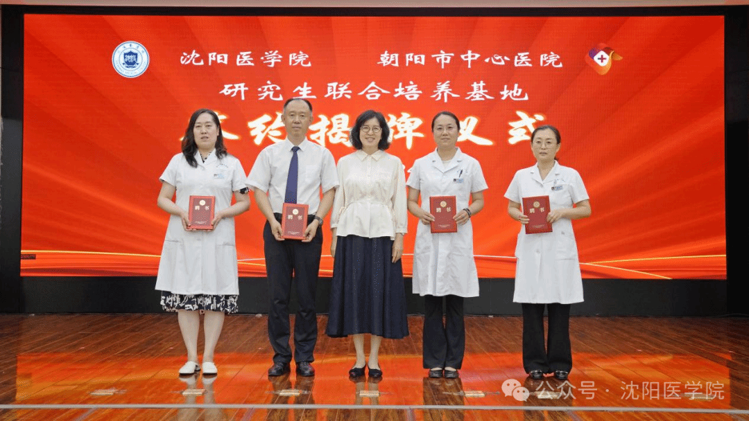 吴玉东校长与李荣梅副校长为朝阳市中心医院受聘的米兰milan官方网站硕士研究生导师及临床实践指导教师颁发聘书。