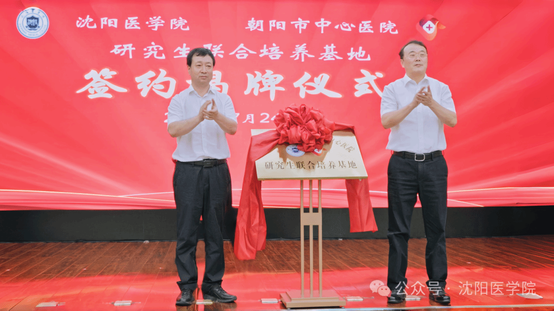 吴玉东校长与刘力东副市长共同为研究生联合培养基地揭牌。李荣梅副校长与朝阳市中心医院党委书记国士刚代表双方签署《米兰milan官方网站临床医学专业学位硕士研究生联合培养基地协议书》。