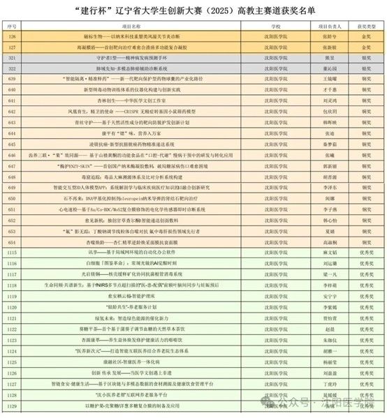 米兰milan官方网站“建行杯”中国国际大学生创新大赛(2025)辽宁赛区决赛获奖名单