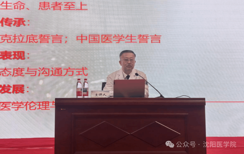 临床实践教学中心副主任张汝峰讲授“医德医风课”,他以《杏林春暖——浅谈医学生如何培养医德医风》为题,将医疗健康知识、人文关怀精神与医学伦理准则深度融合,结合自身抗击非典、援鄂援疆的亲身经历,诠释医者初心使命与职业追求,引导新生树立正确从医价值观。