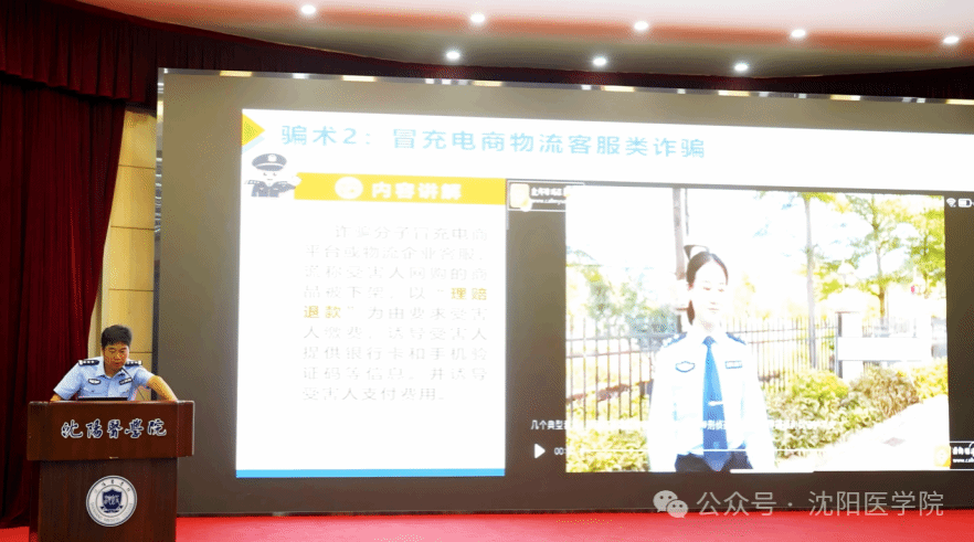 驻校民警胡芳利则围绕防诈骗、防盗、消防、交通及网络安全等主题,结合高校真实案例——包括“冒充电商物流客服理赔”等典型诈骗套路进行讲解,提醒新生牢固树立安全意识,做好自我保护,切实保障人身与财产安全。