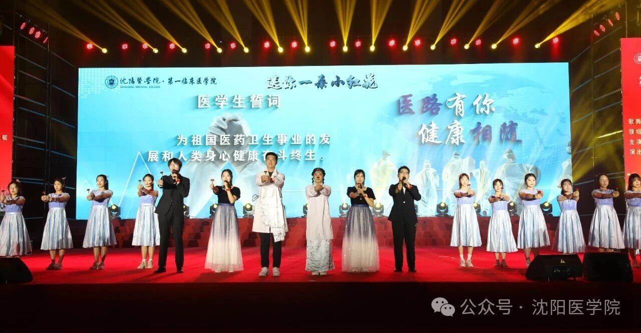 第一临床医学院呈现的歌舞情景剧《送你一朵小红花》,以鲜活剧情与细腻表演,讲述一代代沈医人响应医疗援藏号召,用青春践行医者使命的感人故事。台上台下600余名一临学子齐声宣誓“为祖国医药卫生事业和人类的身心健康奋斗终身”,铿锵誓言中,医者信仰如破云朝阳,将在一代代沈医青年的攀登中愈发炽热;似长明星河,将在一代代医者的传承中生生不息。