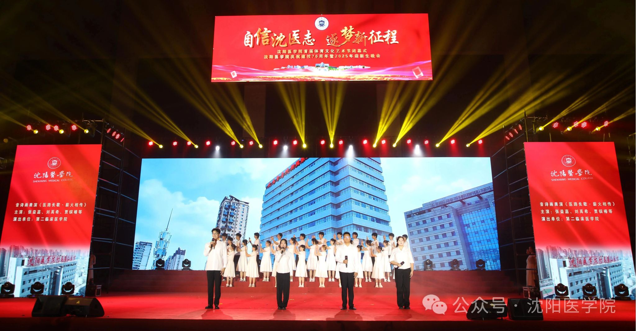 绘就生命希望,续写健康篇章。“医路长歌”中,感人故事久久传唱,伟大精神代代传承。第二临床医学院表演《医路长歌・薪火相传》,回望学校76载峥嵘岁月。表演者以深情演绎,歌颂一代又一代沈医人用智慧与汗水守护健康、以责任与担当诠释医者使命的永恒初心,激励后辈续写沈医新辉煌。