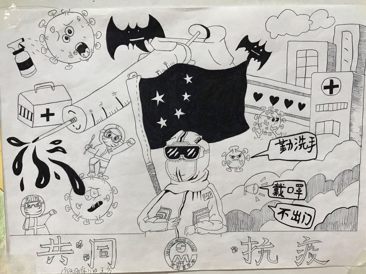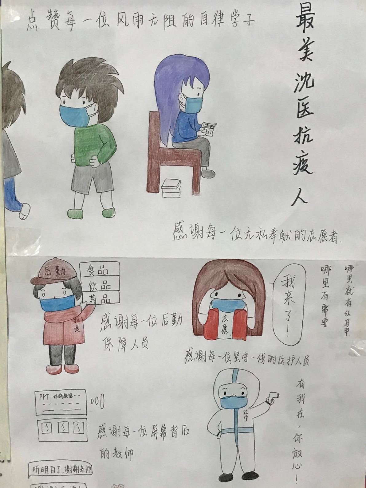 一张张海报抒发着同学们对学校疫情防控工作的支持与理解,展现了同学们身边鲜活的抗疫生活、事件和场景,也突出展示出学校全体师生员工们抗击疫情的精神风貌。