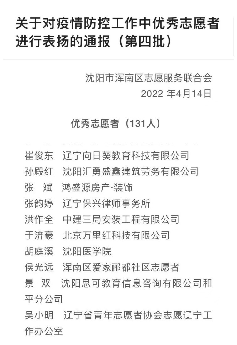 当前,疫情防控已进入决战决胜的阶段。浑南区新冠肺炎疫情防控遭遇战阻击战打响以来,广大社会志愿者主动奔赴疫情防控第一线,成为联防联控、群防群治的重要力量。为进一步激励全区广大志愿者坚定必胜信念,浑南区志愿服务联合会对奋战在抗疫一线的优秀志愿者提出通报表扬,米兰实验动物研究中心胡庭溪老师榜上有名。