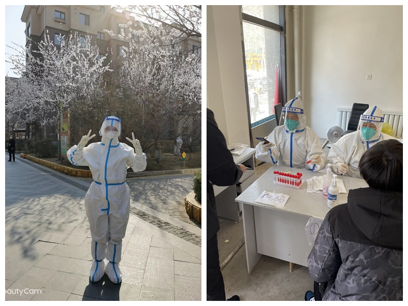 面对突如其来的疫情,绩效办王姝怡同志第一时间到社区报到,投身到抗疫一线的志愿服务工作中去。3月19日的核酸检测工作她负责维持检测秩序,零下十度的天气她值守了整整五个小时,全身很快就冻透,可当听到一位等待检测的大爷说“这么冷的天,你们辛苦了”。一瞬间她感觉浑身又充满了温暖和力量。接下来她参与了八轮核酸检测的扫码登记工作,每次工作都要穿上厚厚的防护服长达五六个小时,眼镜上、面屏上时时会布满雾气,需要不断地擦拭。初春的沈阳总还透着股寒意,几个小时的扫码工作下来,胶皮手套里的手常常会冻得僵硬。一轮轮核酸检测工作她录入了近4000人次的检测信息,几乎将检测点的参检人员姓名都记在心中。除了参与志愿服务,她前期作为铁西区域负责人,在铁西区教职工遇到困难时,通过不断与上级党委、铁西区组织部以及社区沟通,为教职工们疏通化解问题。每天夜里孩子酣睡时她又开始整理铁西区教职工日报告、抽调人员工作台账信息汇总等,作为铁西区临时党支部的宣传委员她用心捕捉典型素材,筛选教职工们的工作照片编辑成一篇篇宣传文稿。
