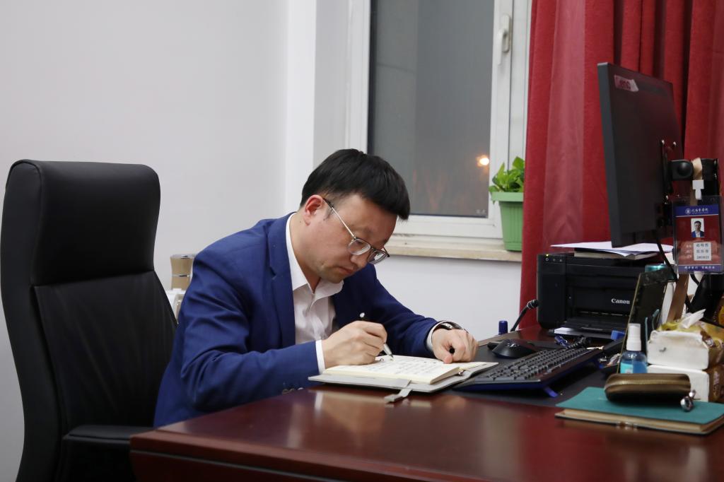 高松处长作为教务部门的顶梁柱,全校教师授课的组织者,疫情特殊时期教学改革的推进者,除了本职工作,二十多天下来还多了好几个外号,“快递哥” “片儿长”……身材格外高大的他在办公室窝了二十多天,狭窄的行军床要用椅子搭边才够长。他的手机上写着“距离姑娘大考还有六十天”。亲爱的同学们,留守的老师们也是谁的儿女、谁的父母,校园的宁静不是因为岁月静好,而是因为他们选择把你们的安危放在前面,他们知道每一份坚守都对你们有意义!