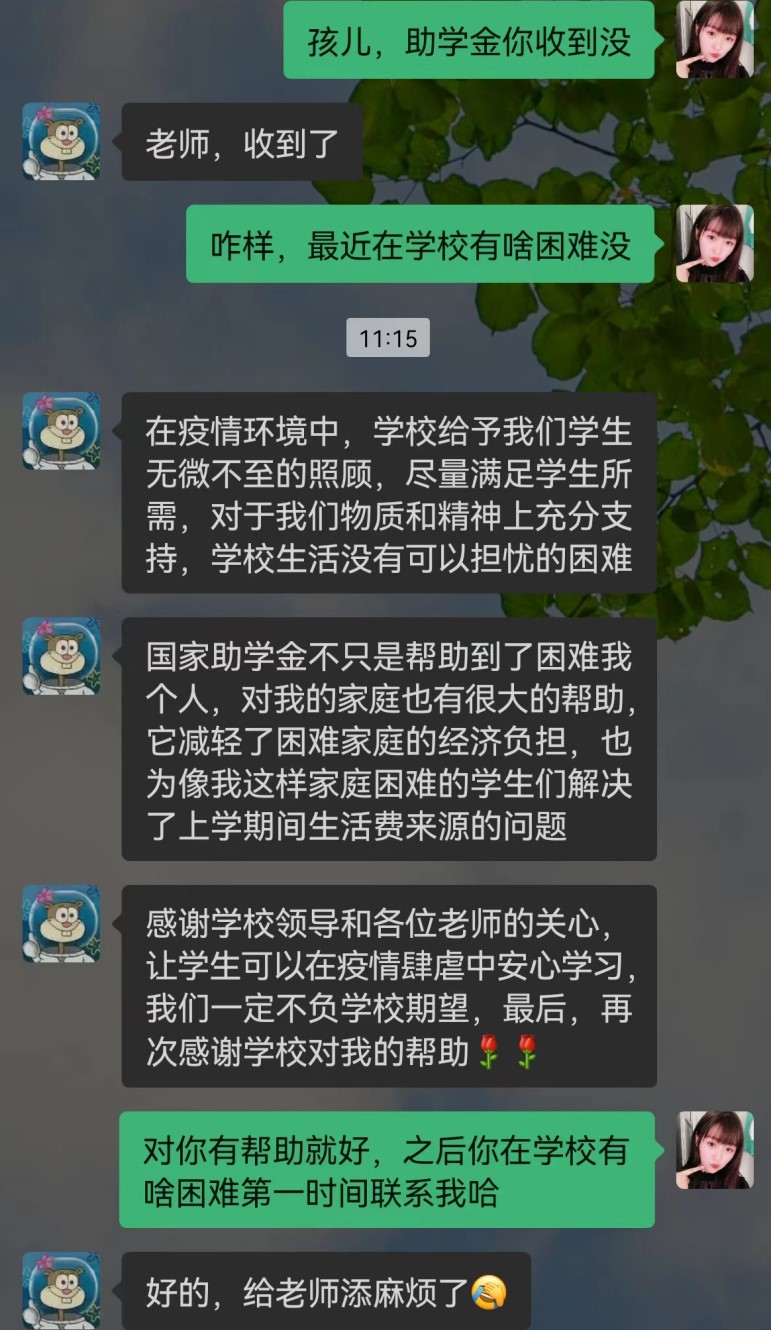 在这非常时期,米兰认真贯彻落实省教育厅《关于进一步加强疫情防控期间学生资助工作的通知》要求,学生工作处联合财务部门,简化办事流程,提前将2022年春季学期国家助学金约253万元足额、快速发放到1533名学生手中。