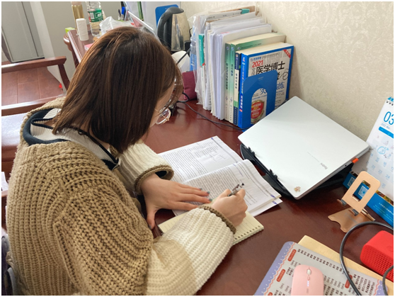 疫情虽能影响同学们学习的地点,但不会影响对学习的热情,对更高学术平台的渴望。有考博想法的研三的同学们将寝室化为自己的自习室,落实慎独精神,为能够前往更高平台深入研究而努力。