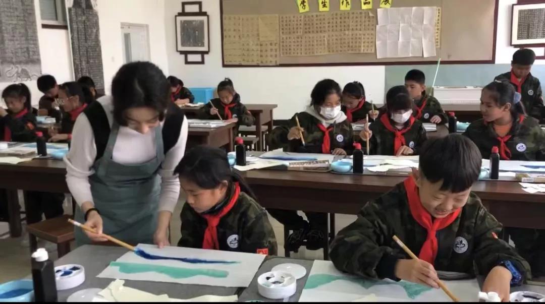 马克思主义学院美育教研室金亚哲、许可老师支教财落小学美育课