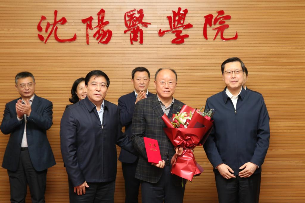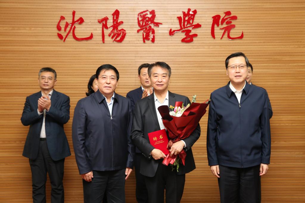 高伟副市长、米兰milan官方网站党委书记陶庆才为附属二院·辽宁省退役军人总医院院长侯明晓、树人国际学院院长麻树人颁发聘书。