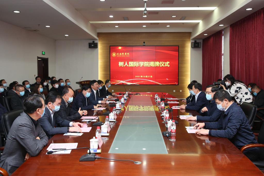 崔枫林副主任、高伟副市长共同为树人国际学院揭牌。