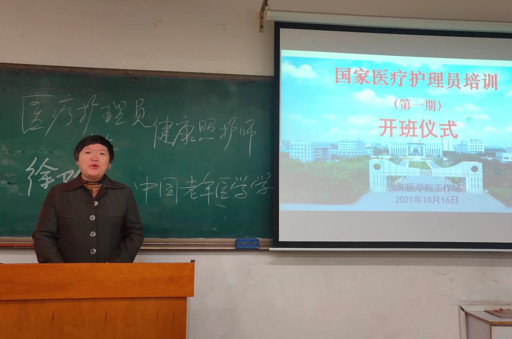 继续教育学院马淑坤院长在开班仪式上讲话,她首先对徐卫华主任一直以来对米兰医养结合相关培训的指导表示感谢,对本次能够顺利开办国家级医疗护理员培训班给予大力支持的相关职能处室、二级学院表示感谢。她强调,为贯彻落实国家、省、市关于推进医养结合事业快速发展的有关精神,充分发挥米兰milan官方网站护理专业、预防专业和康复专业优势,提升沈阳市医疗机构、养老机构从业人员的业务技能,根据沈阳市政府的整体部署,学校立足高校办学优势,积极承办国家级医疗护理员培训项目,为米兰更好地发挥服务社会职能奠定良好基础,从而为打造地方高质量健康养老服务体系作出应有贡献。同时她也希望受训学员们珍惜学习机会,在培训期间坐得住、听得进、记得牢,做到学有所获、研有所得,展现良好的精神风貌。