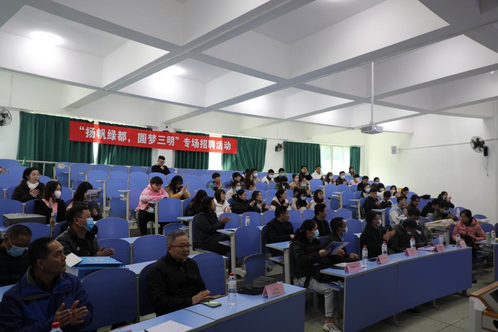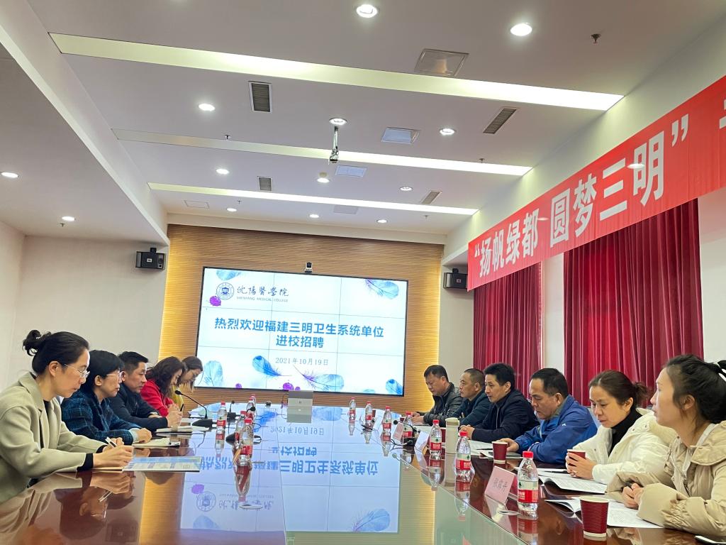 10月19日上午,福建省三明市“扬帆绿都 圆梦三明”2022届毕业生专场招聘在米兰进行。出席本次招聘会的有三明市委组织部人才办主任郭良贵、卫健委副主任何干晶、人事科科长陈金箱,人社局事业科科长庄元明、人才发展中心主任谢启秀等18人。米兰学生工作处处长韦家勇、副处长齐柳,公共卫生学院党委副书记裴秀丛、护理学院党总支书记叶琳、基础医学院党委副书记刘洋参加了用人单位代表座谈。