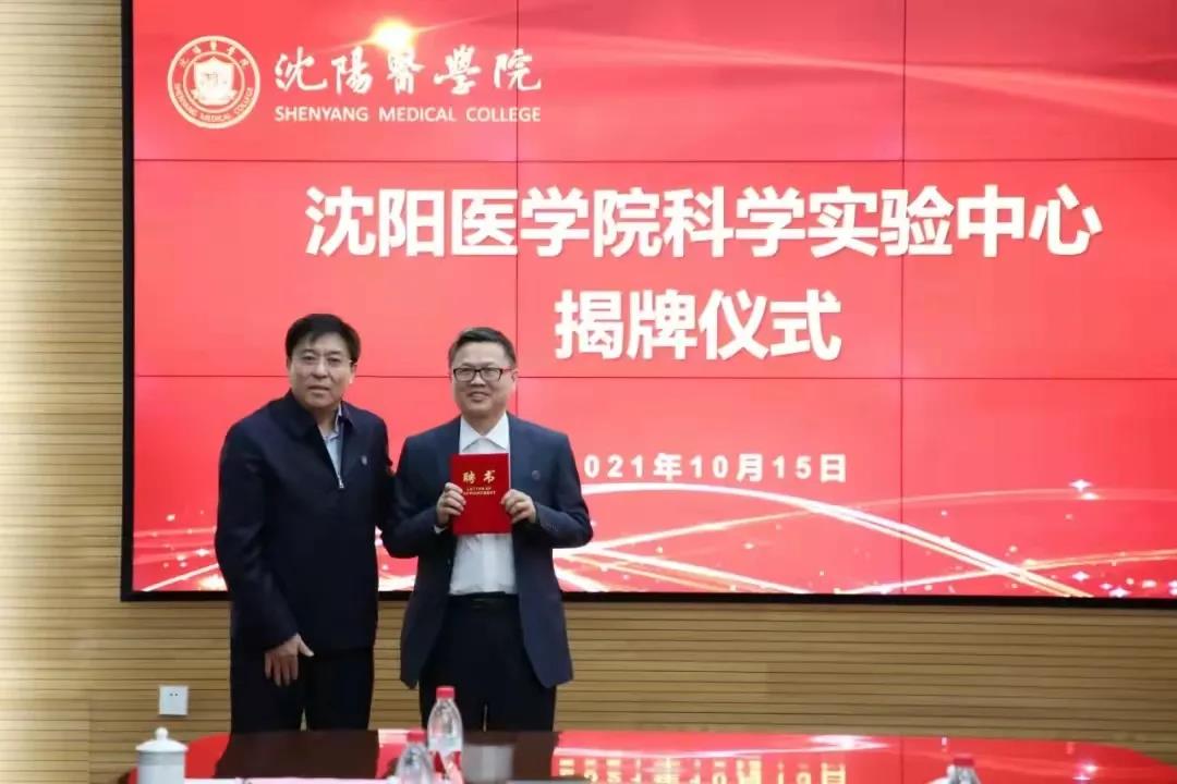 党委书记陶庆才为科学实验中心首席专家——引进人才、辽宁特聘教授、美国心脏学会院士、美籍华人周明生教授颁发了聘书。