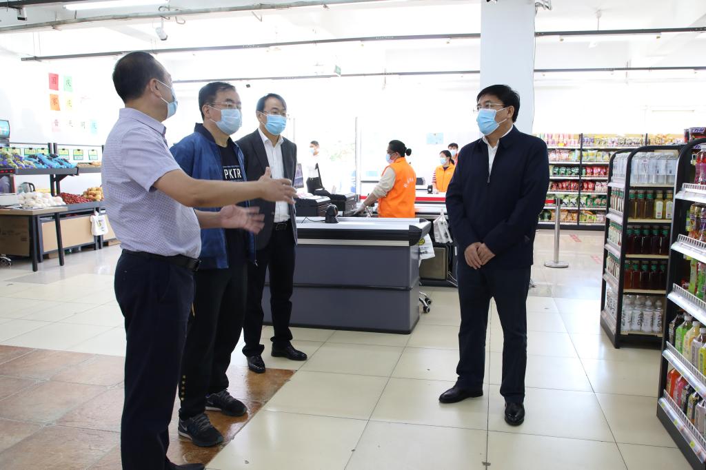 在学生生活区超市,陶庆才书记一行察看了节日期间学生的物资供应,并慰问了工作人员。