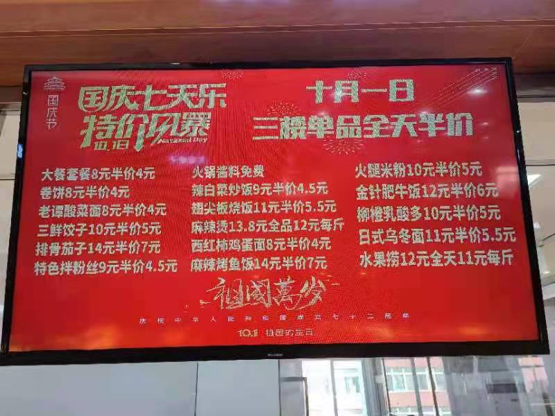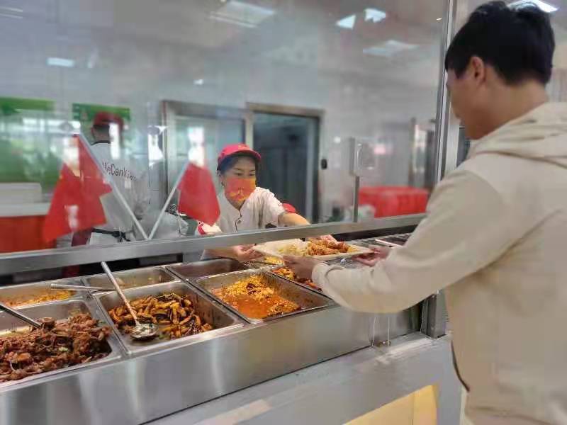 在学生大食堂,陶庆才书记一行察看了学生的节日饮食,当看到大食堂节日氛围浓厚,为同学们提供的餐食不仅花样翻新,价格还仅为平时的一半,陶庆才书记欣慰地表示,学院就是要以学生为本,为他们提供优质、人性化的服务。