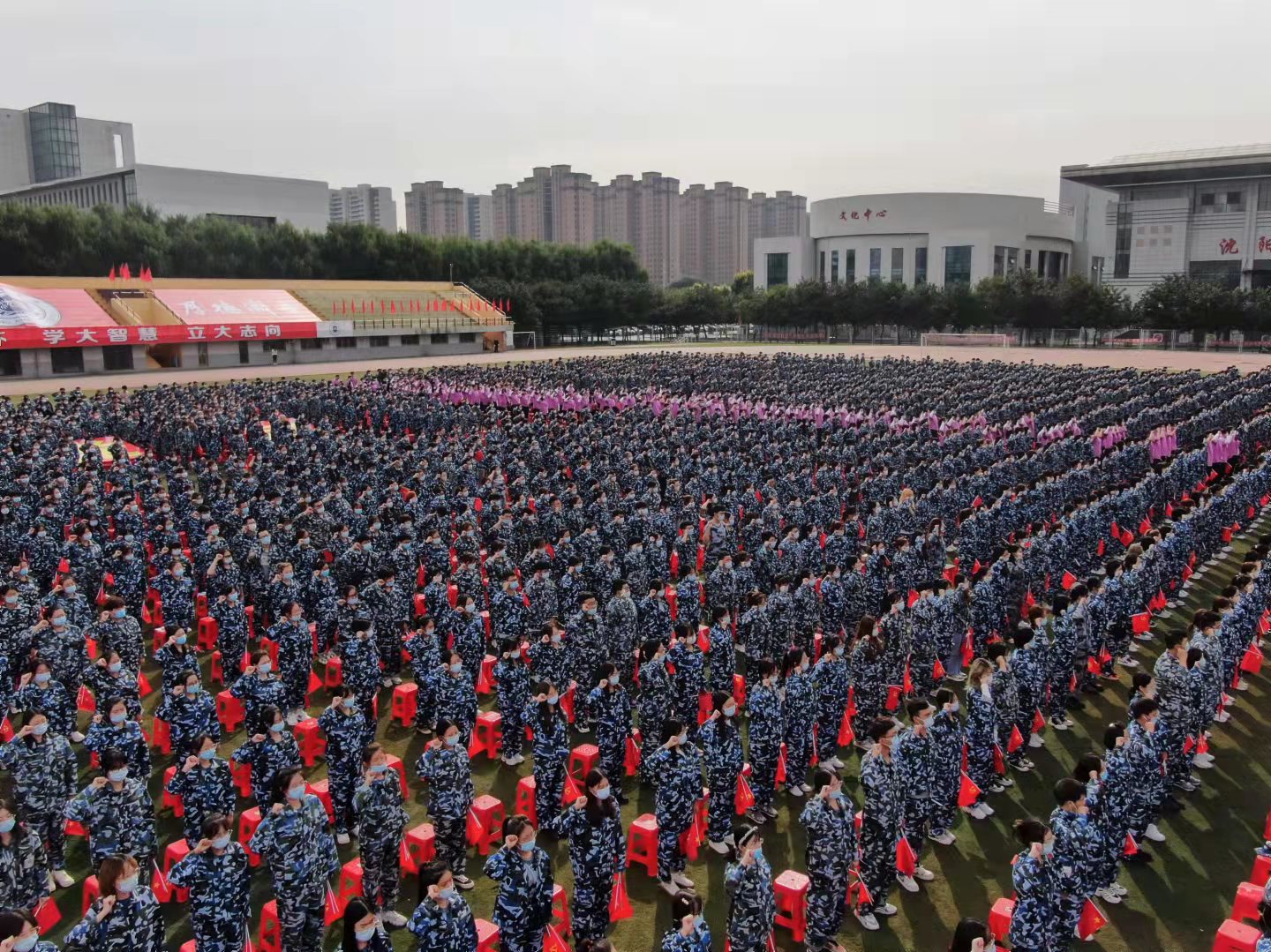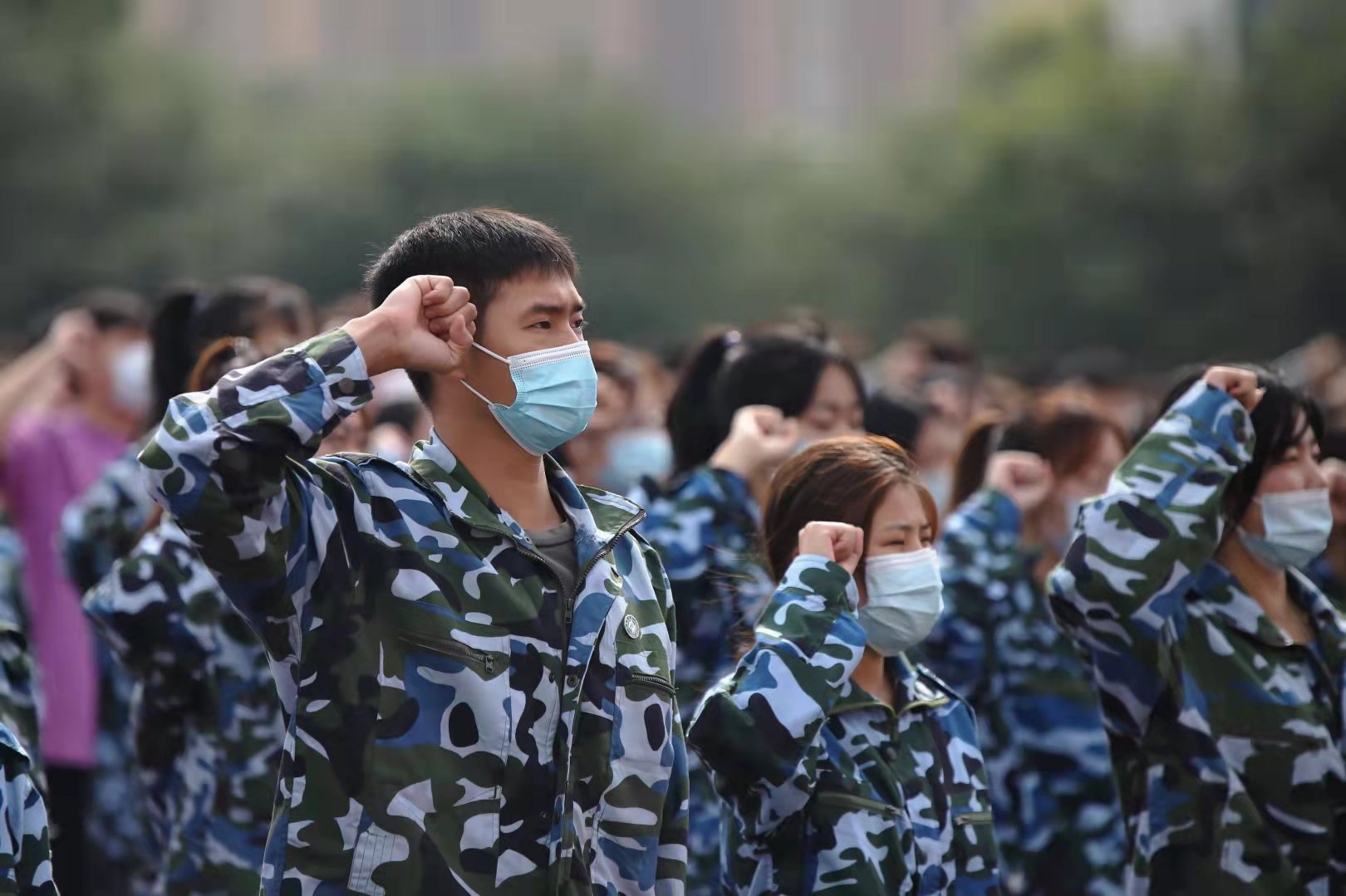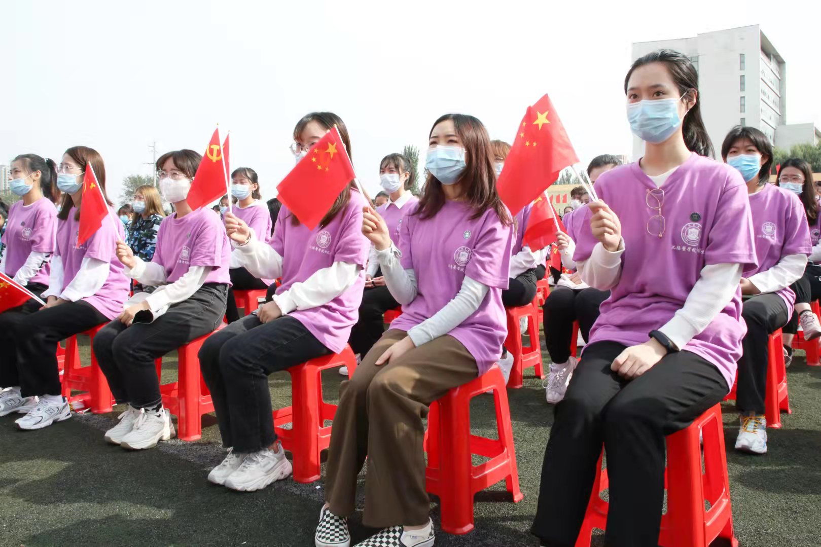 开学典礼在全体师生合唱的校歌声中结束,同学们齐声高呼“请党放心、强国有我”!