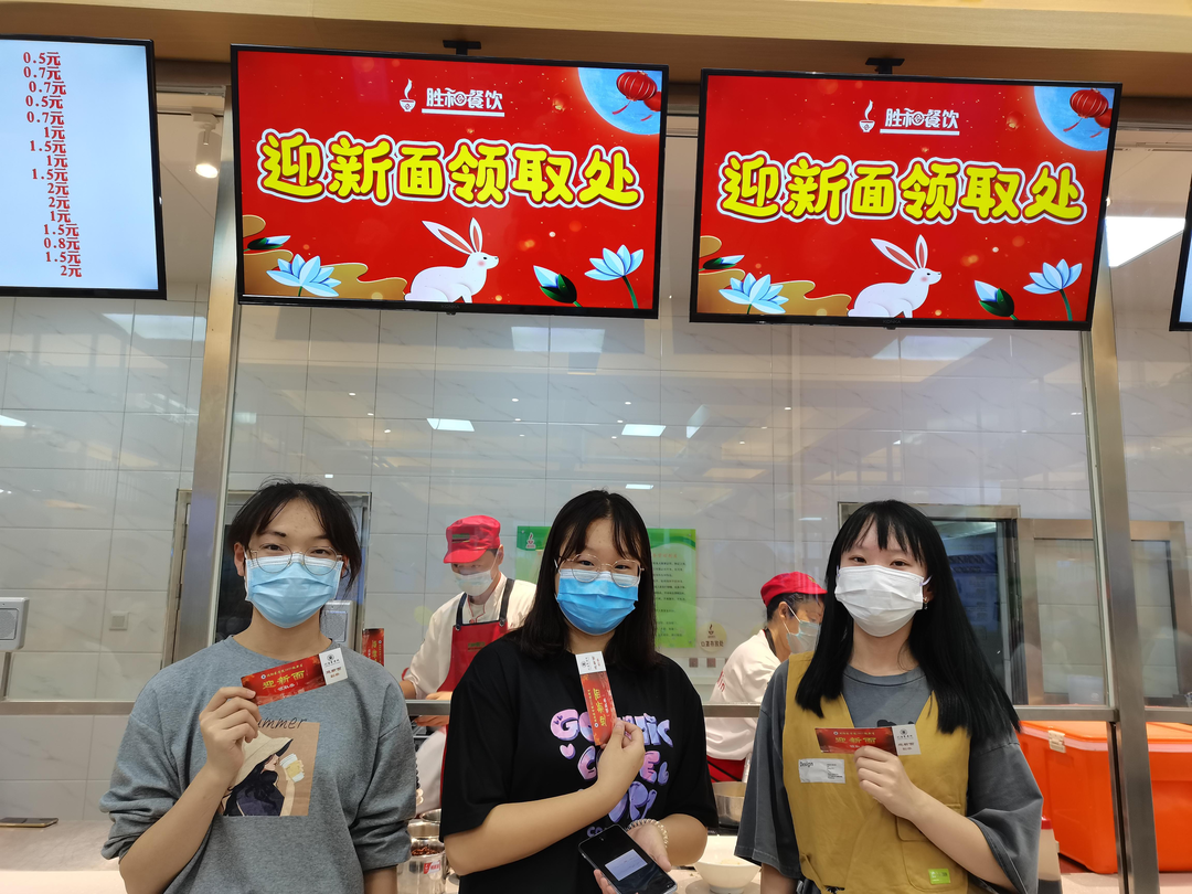 学院后勤餐饮中心为迎接新生做好了充分的就餐保障,为等候核酸检测结果的同学提供专人送餐服务,为入校新生提供多种口味迎新面。在校内指定区域张贴条幅、设置拱门,努力营造迎新氛围。校园购物中心商品种类齐全、环境干净整洁,最大限度满足学生日常生活需求。
