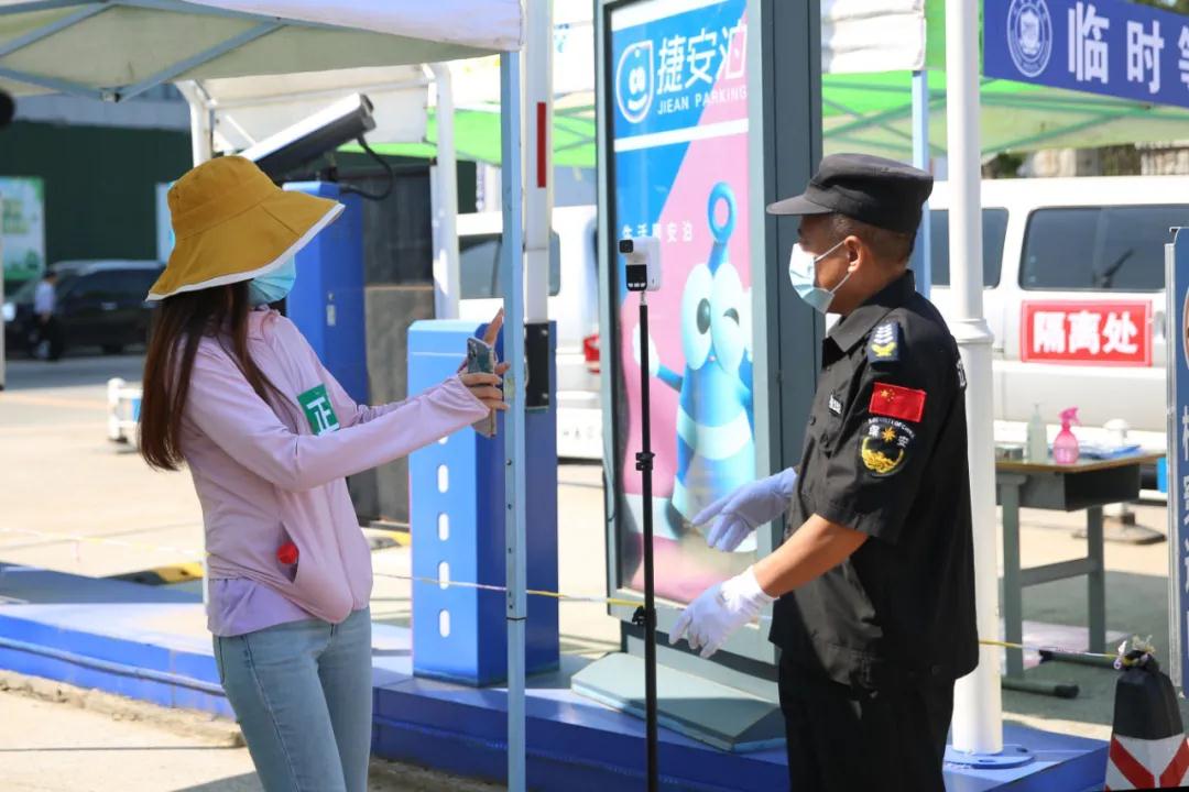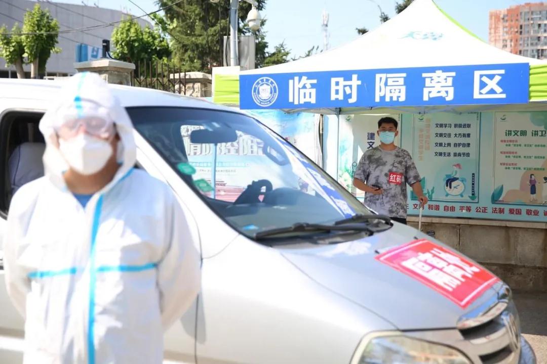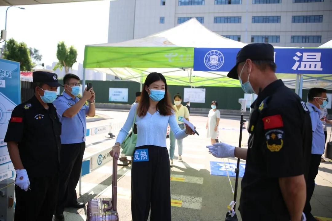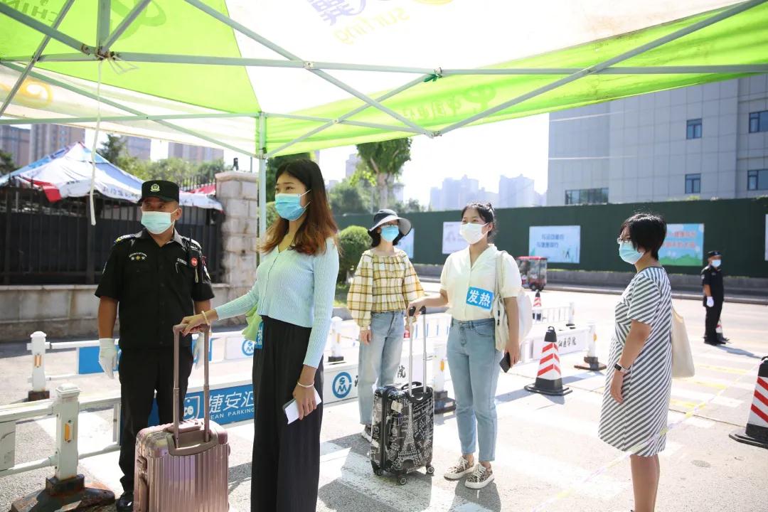 在校门入口测温处,实施“查、测、消、通过”四步骤:“查”即查验健康码、行程码、核酸检测报告,“测”即测体温,“消”即对人员和行李进行消毒,“通过”即上述环节核对与检测无误后方可入校。