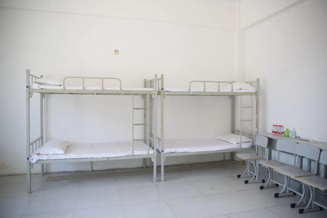 寝室内,学生模拟突然出现体温异常情况,该同学立即向辅导员、校门诊部报告异常情况。学生自行移至隔离室,校医对其进行体温、症状再次核实,并启动相应应急处置方案。同时宿舍其他成员做好防护,在寝室待命。