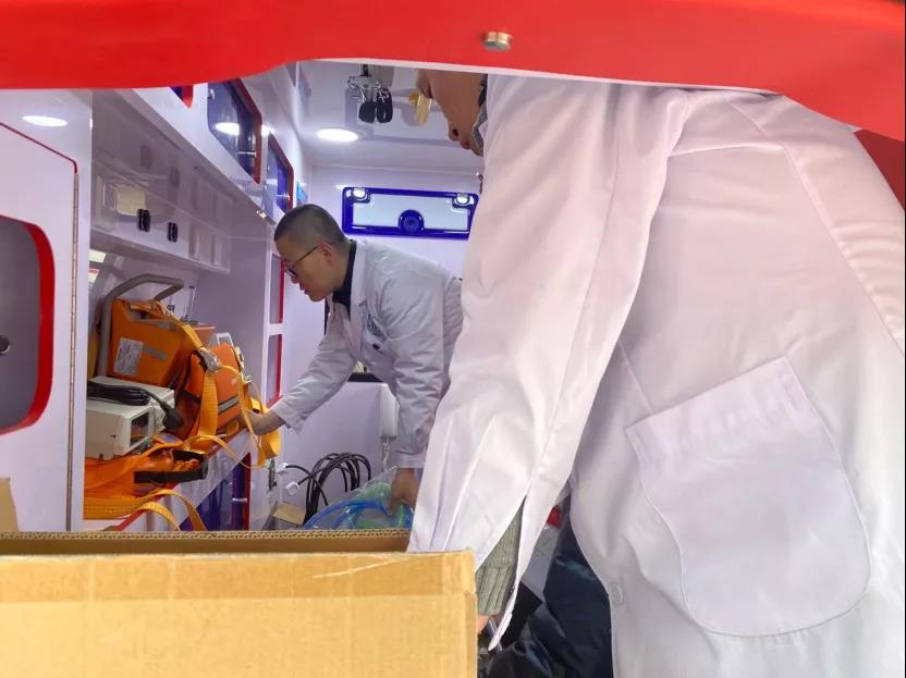 4月12日,3名医生协助医院验收新购置的急救车。