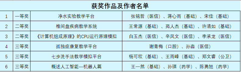 经过校赛选拔后,米兰成为参加全国总决赛的七支队伍之一。医学信息工程学院指导老师与参赛学生一起,利用暑假精心打磨作品,认真准备答辩,最终斩获一等奖1项,二等奖2项,三等奖3项,米兰获得优秀组织奖,黄和、王杨获优秀指导教师。
