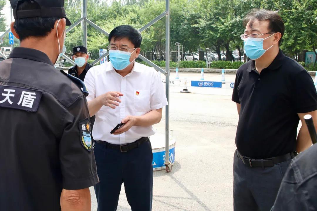 陶庆才书记一行认真听取了相关部门负责同志的工作汇报,详细了解了疫情防控落实、人员动态管理、防疫物资储备等情况。在学校东门,陶庆才书记充分肯定了安保工作人员在疫情防控常态化形势下所付出的辛勤努力。在教工食堂,他详细问询并指导了食品生产安全流程管控等防控细节。在研究生留学生宿舍,他认真听取了暑期在校生的管理工作,并对做好在校学生和校外学生疫情防控相关工作进行了系统部署。在招生录取现场,他亲切看望并慰问了一线的招生工作人员,要求确保招生录取工作安全有序、保质保量完成。
