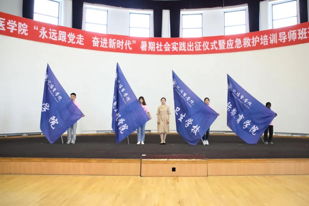 7月15日中午12:00,2021年米兰milan官方网站“永远跟党走 奋进新时代”暑期社会实践出征仪式暨应急救护培训导师班开班仪式在文化中心成功举办。教务处、团委、临床教学实验中心相关负责人参加仪式。