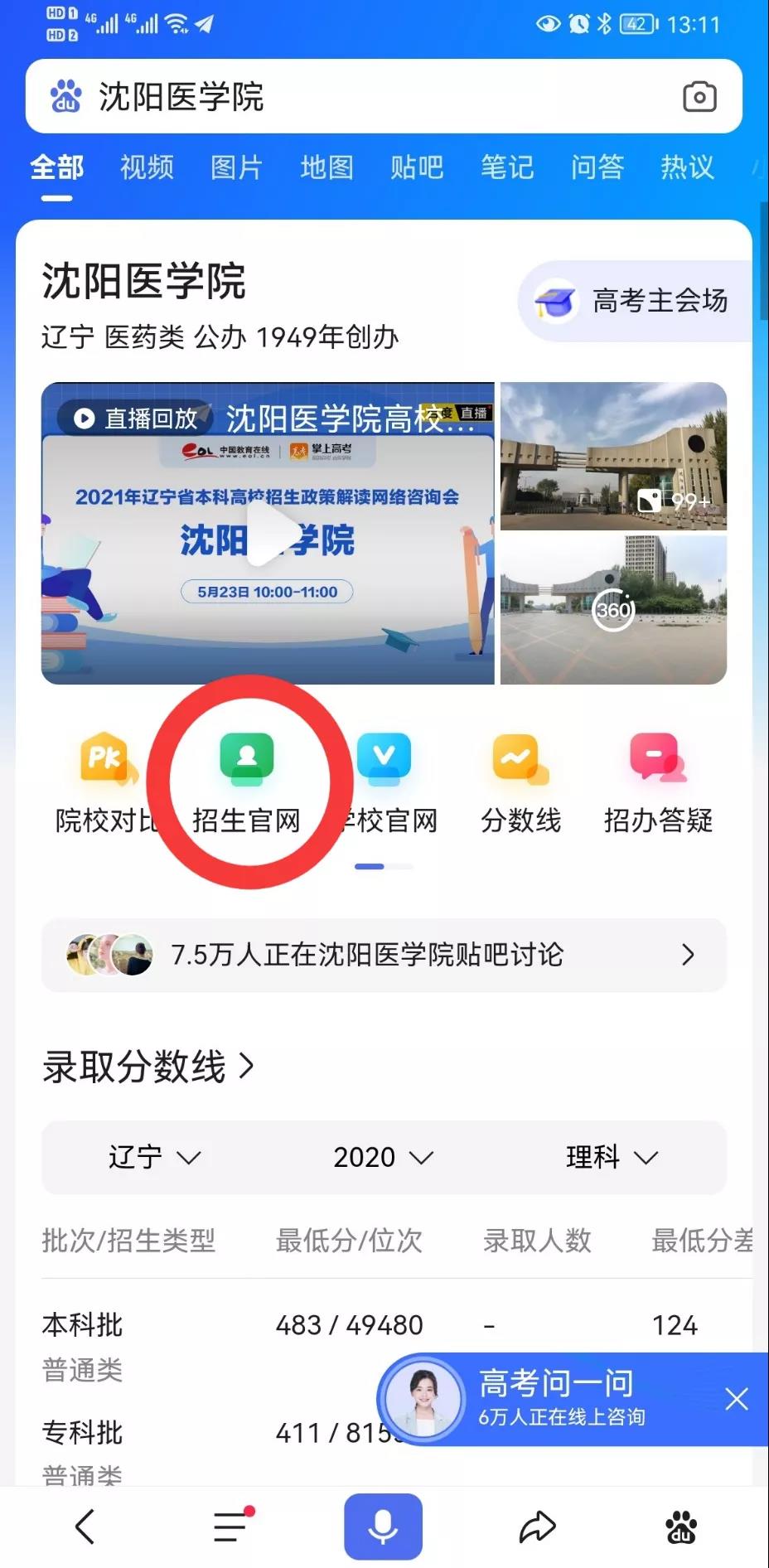 1.百度搜索“米兰milan官方网站”,点击“招生官网”。
