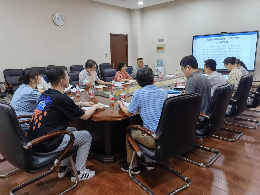 6月23日下午, 沈阳市科学技术局监督与诚信建设处副处长滕强保来米兰围绕深化项目评审、人才评价、机构评估(以下简称“三评”)改革,加强科研诚信和学风建设等内容开展调研。米兰公共卫生学院院长段志文教授、基础医学院副院长周伟强教授、药学院副院长金戈副教授等二级学院负责人、科研人员代表,以及科技处、人事处有关人员参加了调研座谈。座谈会由科技处处长赵宇丹主持。