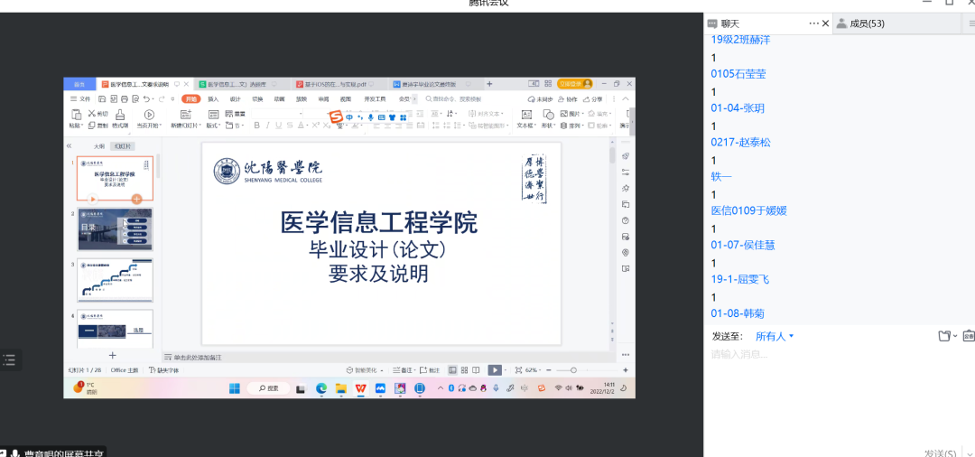 为保障医学信息工程学院2023届毕业生毕业设计(论文)质量,医学信息工程学院于12月2日召开毕业设计(论文)要求及说明会,医学信息工程学院2019级全体学生参加。