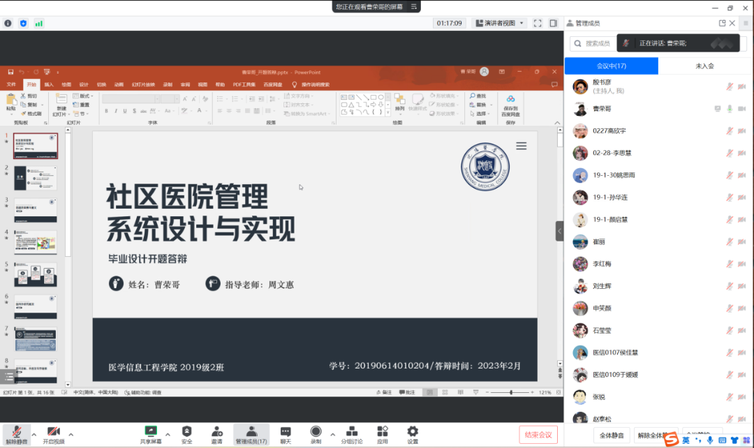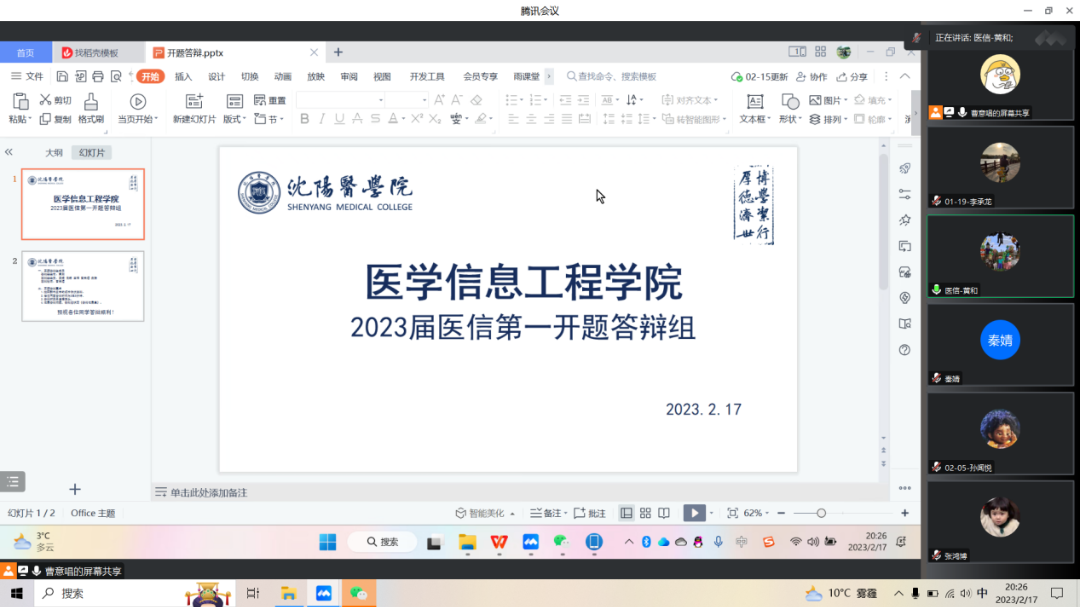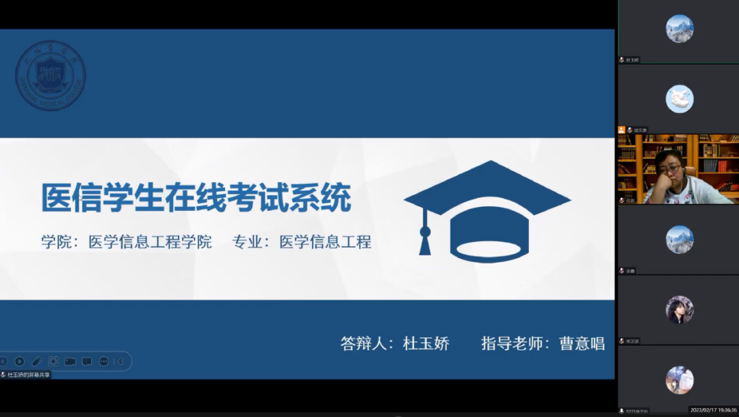 为确保切实做好2023届本科生毕业论文(设计)指导工作,保障毕业论文(设计)质量,2月17日,医学信息工程学院举行线上开题答辩会。医学信息工程学院高度重视本科生毕业论文(设计)工作,院长黄和要求务必对每位同学的毕业论文(设计)严格把关,确保每位同学都符合要求。