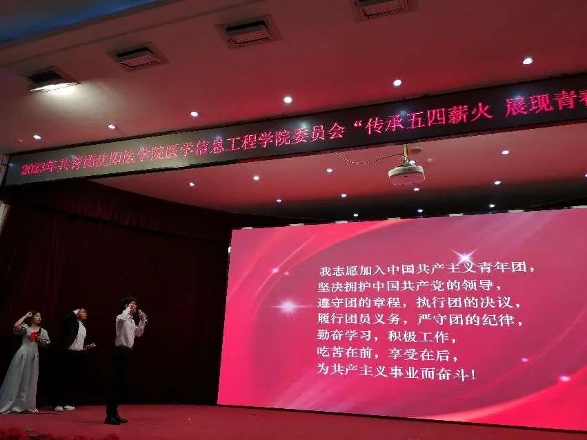 5月10日晚,学院全体师生在学术报告厅举办“传承五四薪火,展现青春风采”纪念五四运动104周年文艺晚会。活动中由我院2020级学生代表、沈阳市优秀共青团员代表袁浩同学领誓,并奏唱中国共产主义青年团团歌《光荣啊,中国共青团》,晚会的节目由同学们自编自导、倾情演绎,把五四运动的爱国主义精神贯穿于每个环节。活动后师生们深有感触,深切感受到当代中国的强大繁荣和青年的朝气蓬勃。