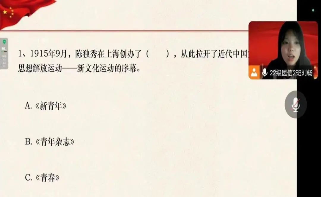 2022级2班团支部开展五四青年节线上知识竞赛。竞赛过程中,参赛同学们在一次又一次的知识比拼中将活动推向高潮,大家你追我赶互不相让,有效提高了同学们的理论知识储备。
