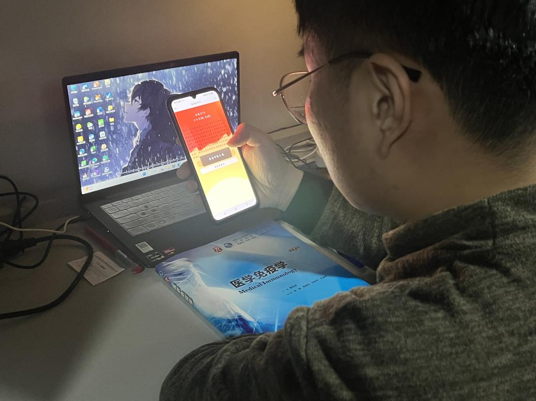 同学们学习热情高涨,通过扫描二维码,在手机上认真回答有关法律的问题,随着活动的开展,有近2000名同学获得了满分的优异成绩。2021级精神医学尚喆姝表示:“通过这次宪法竞答活动,增强了我的法律意识和责任感,对我以后的学习和生活有着极其重要的意义,我会继续学习,不断提高自己。”