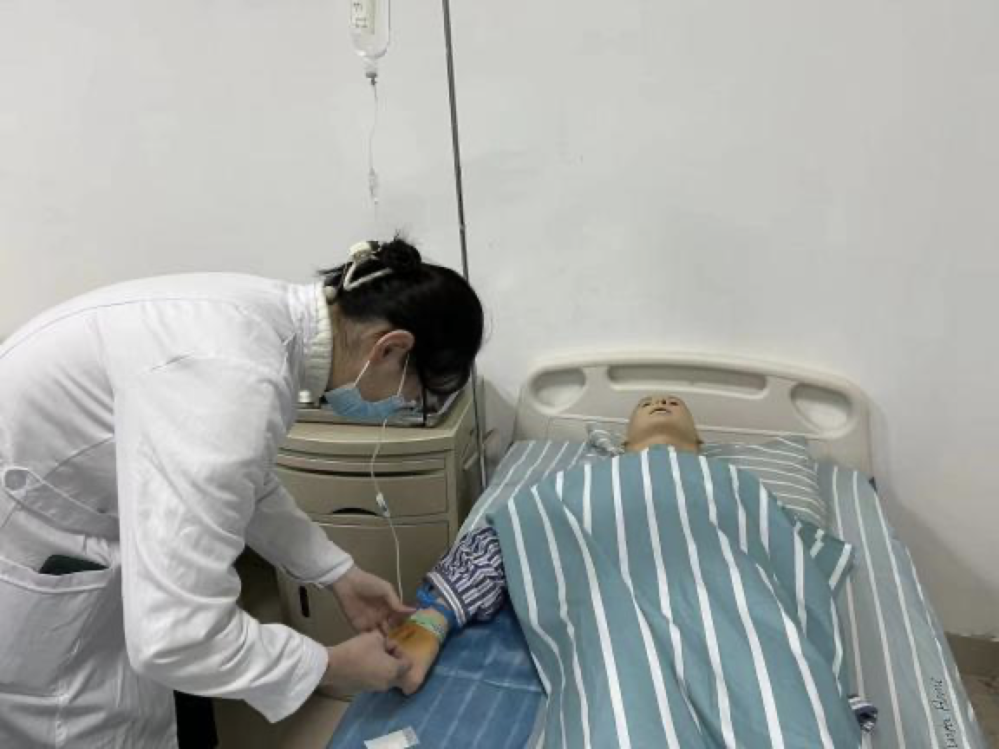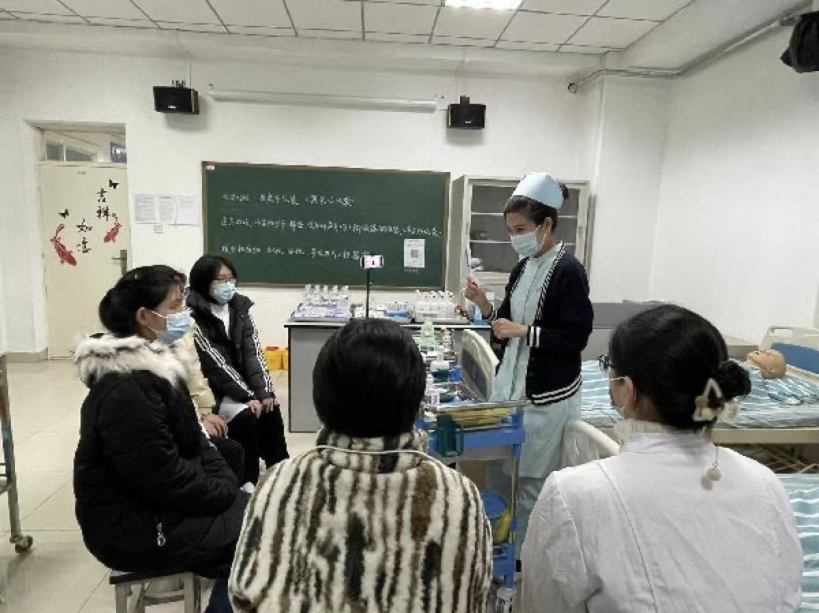 赵冰副院长用扎实的护理专业知识、丰富的临床经验为学生示教了静脉输液、肌内注射、皮内注射和皮下注射等操作,深入浅出,重点明确。当学生自行练习时,她放手不放眼,针对每一位学生的特点,为学生们讲解难点和易错点,手把手教学,说明注意事项,有步骤、分阶段地让学生熟悉护理操作技术,培养学生的临床思维,并强调面对患者生命健康,要时刻保持高度的责任心和严谨的态度。