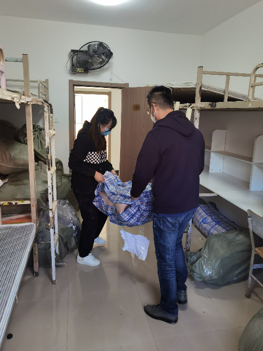 副院长汪大鹏带领“行李搬运组”教职工提前来到学校为学生搬运行李。在与每位学生逐一视频通话确认后,老师们把每件行李准确地运送到各个学生的寝室里,汪大鹏副院长还组织“实验室维护组”教职工清扫实验室卫生、检修教学设施、备齐实验耗材,以整洁的环境、全新的面貌迎接学生返校。