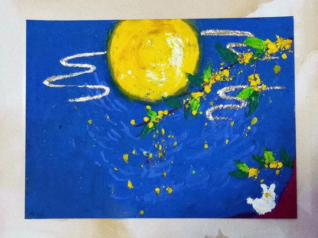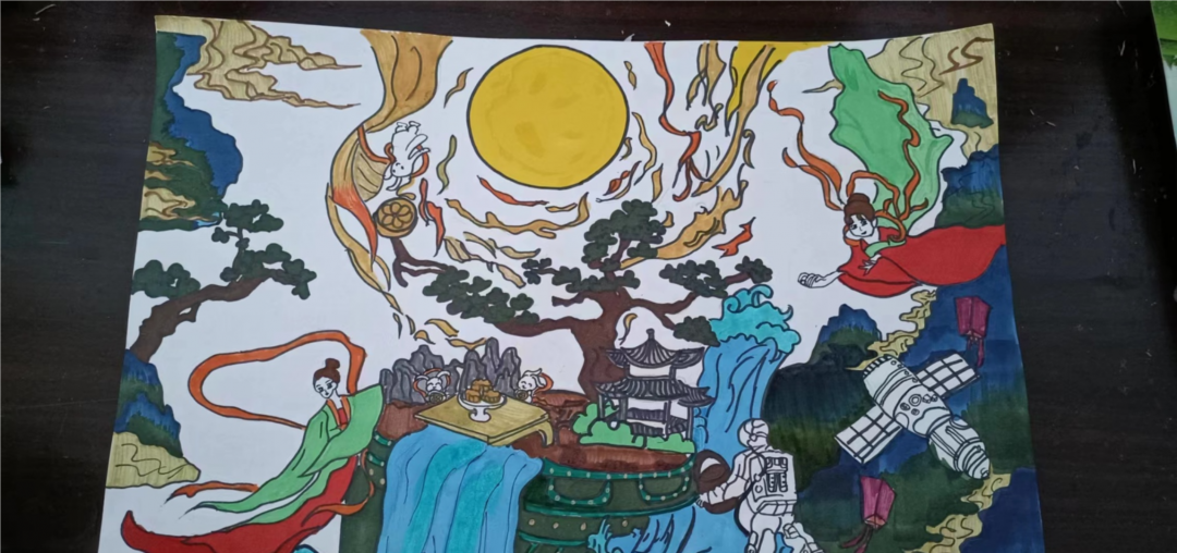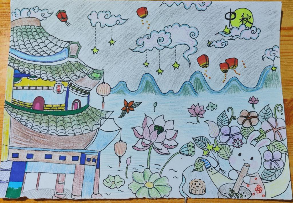 活动中,同学们纷纷向大家展示了自己精心绘制的画作。这些作品中既有展现中秋月圆之日家人团聚、共赏明月、品尝月饼的场景,让人感受节日的欢愉,也有描绘嫦娥裙带飘逸、神态温婉美丽的生动画面,有的作品还呈现了玉兔在金黄桂花树下悠然自得,憨态可掬的形象……同学们在展示作品的同时也将作品的创作心得娓娓道来,讲述着欢度中秋的小故事。