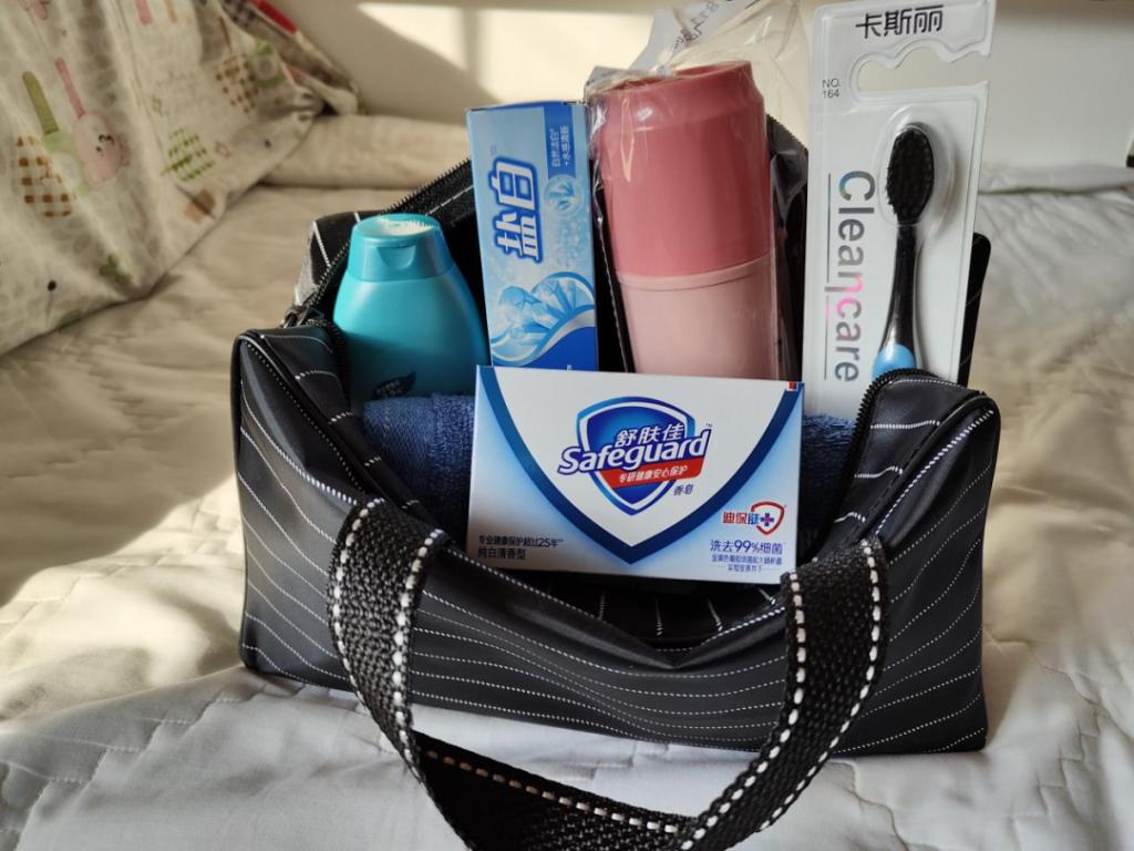 刚收到午餐的19级卫检专业小刘同学脸上满是幸福地说道:“每天都有楼层长统计各寝室的订餐数量,到了饭点儿志愿者们就会将餐品点对点地发放给同学们,在严格遵守防疫政策的同时,让同学们吃得准时、吃得放心、吃得美味。每顿饭送来的时候都是热热乎乎的,可以想象食堂的叔叔阿姨们付出了很多辛苦!为了满足我们生活需求,学校特意向每名同学赠送一套洗漱用品爱心包,听同学说如果有特殊情况学校还给发放免费行李,总之,真的很暖心!”