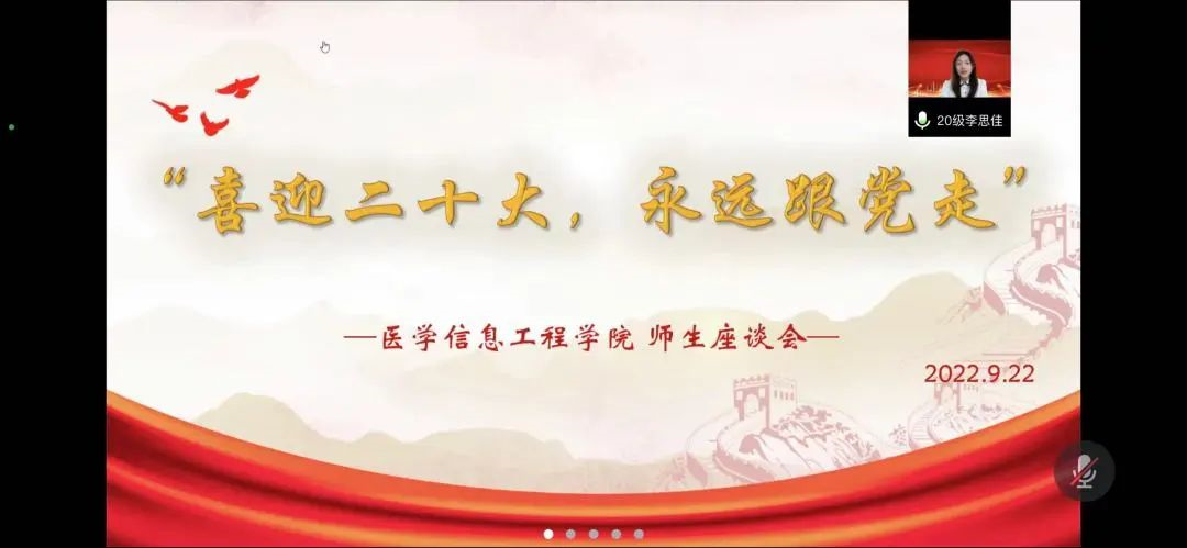 9月22日,医学信息工程学院召开“喜迎二十大 永远跟党走”师生座谈会,结合中共中央宣传部“中国这十年”系列主题新闻发布会内容,畅谈学习体会。会上,学院党总支对师生党员提出四点希望和要求:一是要锤炼党性修养,筑牢坚定信仰之基;二是要练就过硬本领,提升干事创业之力;三是要砥砺高尚品格,把稳成长成才之舵;四是要敢于担当作为,永葆拼搏进取之心。